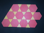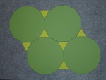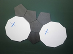十分な時間を確保できない中,予想以上に組み合わせによる敷き詰めを完成させたグループが多かった。そして,グループの中には,3種類以上の正多角形を使って敷き詰めに挑む様子も見られた。ただ,順調に敷き詰めることができなかったグループもあった。その正多角形の組み合わせを紹介する(写真9)。