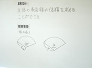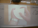 生徒は教科書,デジタル教科書で提示![]() 実物投影機で展開図を写し,理解させる。 ![]() さらに,web上にある動画を見せて確認させる。 |