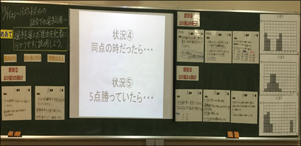 次に,やりがいのある授業づくりのために,『課題設定』を工夫した。既習事項を活用し,学習課題を解決する。また課題に状況を3つ設定することで,状況に応じて多様な答えがあることに気づかせることで,学習課題に対しても主体的に取り組むことができるようになるのではないかと考える。さらに,それぞれの状況に応じて根拠の吟味を協同学習の中で行うことで新たな発見や視野を広げることに繋がるのではないかと考える。