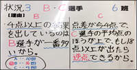 | ○状況毎に一つの班を発表させる。答えによって,別の班を発表させるか,個人の考えを発表させる。 | ||||