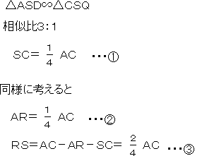①②③よりAR=RS=SCとなる。つまり,AR:RS:SC=1:1:1(終)
