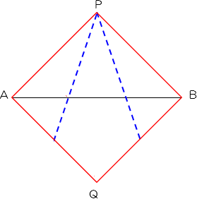 ②線分AQ,BQの中点に点Pから線を結ぶ