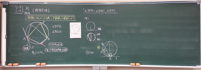 | 3 接線と弦のつくる角の性質(接弦定理)を証明する。 | |
