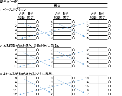 3 また別の活動をする。A列の生徒はさらに一つ横にずれる。
