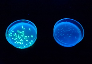 目に見えない遺伝子が発現し,目に見える形でコロニーができたり,発光したりするので容易に結果を確認でき,さまざまな考察ができる実験でもある。