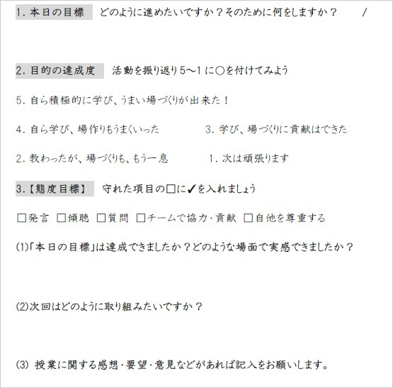 ![]() 図3 振り返りシート ※クリックすると拡大表示されます |