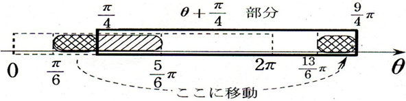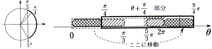との関係が理解できない。そこで,単位円の部分を数直線の帯を使い,基本の答えである