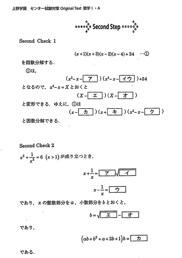 一般受験において,フォーカスシリーズが定着した頃,センター試験に十分対応できる力をつけるため,新たな教材を探していたときに某予備校講師と問題集,参考書の話で盛り上がり,私が教えている生徒に最も適した教材を自ら作ってみようと思い,学校独自のオリジナルセンター試験対策問題集を予備校講師の協力のもと,作り上げ,まずは数学Ⅰ・Aの内容より手がけることになりました。内容は3つのSTEPに分けSTEP1では基本公式の再確認,STEP2ではセンター過去問の小問題をあげ,STEP3ではchallengeとして大問題を載せてSTEP1・2で学んだ内容の応用として生徒に解かせました。項目は大きく6章に分け,数と式から平面図形まで順に進むように作り,生徒は1年終了から2年の春休みに初めてこの教材を渡され,休み中に一度終える事を毎年行うことが恒例になり,この時期に行った数学の範囲は模試などの偏差値結果にも表れ,定着するようになり,この教材を使い勉強を行った生徒がセンター試験を受け平均点がアップしてきたことをみて,この問題集を作ることに間違いはなかったと確信しました。ただこれからセンターの内容も変わりつつあり,新たな教材作りを考え,生徒の得点アップをこれからも考えていきたいものです。