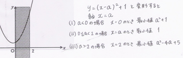 2次関数 y=x2 -2ax +a2+1(0≦x≦2)の最小値を求めよ。ただし,a は定数とする。