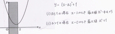 2次関数 y=x2 -2ax +a2+1(0≦x≦2)の最大値を求めよ。ただし,a は定数とする。