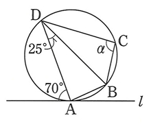 P.156の問題(1の(2))でα を求める際に, 「接弦定理」と「円に内接する四角形」の2つの性質を使っていた。このように,1つの定理だけでなく複数の性質・定理を使う問題が入試などでもよく出題されている。そこで,生徒たちだけでこのような問題を作らせてみようと考えた。(プリント配布)
