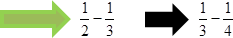 という規則性を見つけることができる。この活動の発展として,分母の数字の差が1ではない場合はどうかを同じ活動をさせながら考察させた。