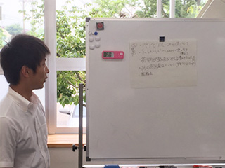 解答が示される時もあるが,この日は示されなかったので,皆で解くことからスタート。黒板や白板,紙などに書きながら,「ああでもない,こうでもない」と話しながら問題を解く。まさしくグループワークそのものである。