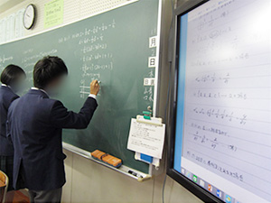 1つ目は,ICTの利活用だと考えています。卑近な例としては,IWBの利用による授業進度の向上があります。また,類題の提供,視覚的な効果を用いて理解力を促進することができます。