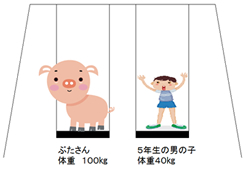 ア 100kgのぶた イ 40kgの男の子 ウ どちらも同じ回数 エ わからない