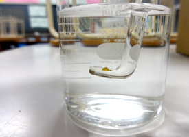 話し合いの様子から,子どもたちは溶ける様子をじっくりと観察したことがないことが伺えたので,全員で塩が溶ける様子を確認することにした。予想するときに,塩が底まで到達するかしないかについて意見が出たが,塩の様子や水のかさについては意識していないようだったので,子どもたちから気づくことができるようにアクリルパイプを用いて塩が溶けていく様子を観察できるようにした。また水のかさがわかるようテープで印をつけることにした。