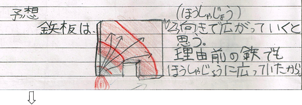 「(自分たちの予想)」から「こういう結果になるはず(おこるはずの結果)」が確かめられる。
