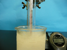 ○試験管の大きさは16.5ミリと18ミリで何回か実験を試みたが,温度計が0℃を示す時間が18ミリの方が長いので,18ミリの方が良いように思われる。