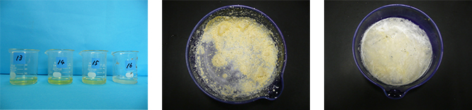 | 写真4 鉄+塩酸(15%) | 結果(13) 100mg → 0.2g | 結果(16) 500mg → 1.5g | ||