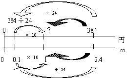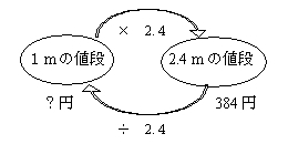 | 問題 | 2.4mで384円のリボンがある。 このリボン1mの値段はいくら? |