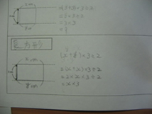 | T: | xとyの値をいろいろと決めてみると,台形は他の図形になるね。どんな数の時に,他の形の面積を求める式になるか,考えてみましょう。 |