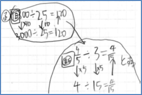 | C: | わられる数とわる数に同じ数をかけても,わっても商は変わらないことを使っている。 |