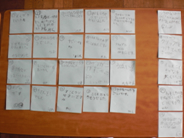 | <友達からのアドバイスが書かれた付箋紙> | <グループに寄せられた感想を分類して並べてみた> |