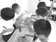 ・ペープサート,発表用のカード,写真などを使い,友だちに分かりやすく,視覚的に訴えられるような紹介ができるよう支援する。 ・自分でしっかり説明できない児童については,そばに行って支援する。 ※家で挑戦してきた仕事を,友だちに分かりやすく説明できたか。(思考・表現) ※友だちの説明を聞いて,自分も興味を持ってやろうとしているか。(関心・意欲・態度) ☆★しっかり話す人の方を見て順番に気をつけて聞くように支援する。理解できない場合は,そばで説明する。 |