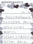 | ・紹介を聞くときに,自分の家と似ているところ違うところに気をつけながら聞かせる。 ・家で挑戦した仕事について,お家の人に励ましの手紙を書いてもらう。 | ◎ | ○ | ・仕事をして,自分でできることが増えたことに気付いている。(発言,ワークシート) ・友だちの説明を聞いて,自分の家と違うところや自分にもできそうだと気付いている(発言,ワークシート) | |||||||