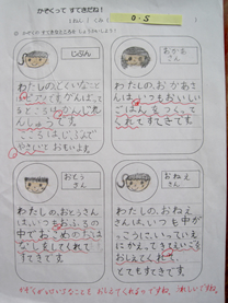 - 単元が終わってからも,家族のために自分でできることを考え,実践を続けている子が複数いるので,活動が日常化するよう見守り励ましながら,学級全体に広めていきたい。