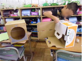 - ○身の回りにあるいろいろな材料を利用し,動くおもちゃを工夫して作ったり,作ったおもちゃの遊び方を工夫したりして,おもちゃのおもしろさや不思議さに気づく。