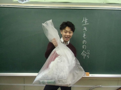 ・キリンのような動物にとっては食べ物とそうでない物の区別がつかず,ビニール袋を食べてしまう現実を考えさせる。