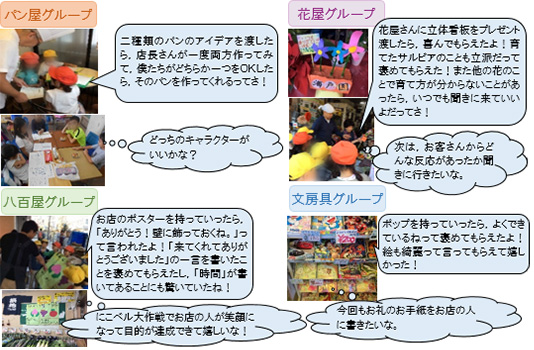 子ども達一人ひとりが,それぞれ興味をもった店の方々とかかわれるようにしたことで,子どもの活動の意欲を十分に引き出すことができた。
