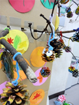 | 第4・5時 ・秋の自然物を使って飾りやおもちゃを作る。 ・考えたものを友だちと共有し,ふり返る。 |