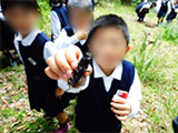 季節ごとに大学構内や小学校の周りへ出かけ,調べたり遊んだりする児童
