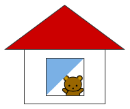 窓の中にいるキャラクターを見るため,三角の色板一枚を開けるという場面を設定することにより,図形を動かす必要性を持たせ,基本的な図形の変化の仕方を理解させられる。