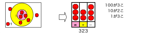 をおいていくことでより数の大きさがとらえやすい。