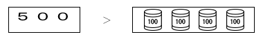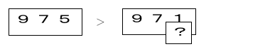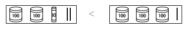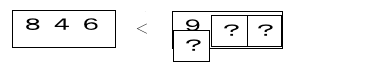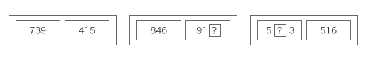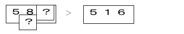 単なる数だけの大小比較だけでなく,数構成を意識した大小比較をさせ,不等号の使い方に慣れさせる。また,練習を2段階に組み立て,位をかくしておくことで,上の位の数から着目していけばよいことに気づかせる。 |