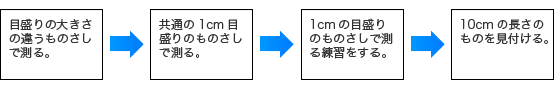 | 3 | 同じ目盛りのものさしで測定し,1cmを知る。![]() |
