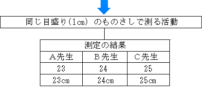 | 2 | 目盛りの長さが異なるものさしで長さを測り,結果について話し合う。![]() |