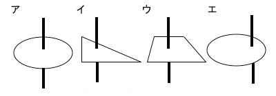 子どもたちが,自由に調べることができるように4つのこまの形を写し取ったワークシートを子どもたち一人一人に準備しておく。 ![]() 子どもたちが使うワークシート