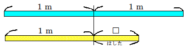 はしたに着目させるため,ものさしではかったら,1mずつ区切り,長さを書いておく。 |