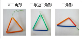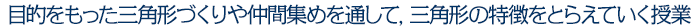 モデル的な三角形を3つ提示し,自分の作った三角形を同じ仲間に入れさせる。
