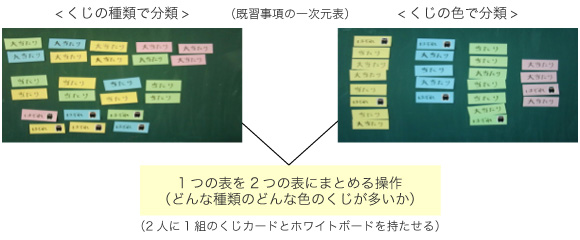 | 2 | くじの結果を見て話し合い,一つの観点で分類・整理する。 |