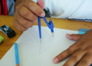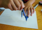 1つの辺の長さを示して作図したあとは,自分で長さを決めて形や位置が色々なひし形をかかせる。もしかけない児童がいた場合は,教科書を参考にさせたり,二辺をかいた図を与えたりすると良い。 |