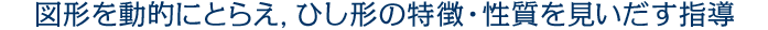 台形や平行四辺形の学習を活かして,1時間の中で「図形の構成,観察,分類,性質を調べる,作図,弁別,身の回りから見つける」の一連の活動を取り入れることで,ひし形の意味をより深く理解できる。