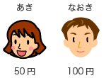 問題1![]() 二人がお金を持っています。どんな比べ方があるでしょう。