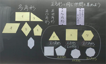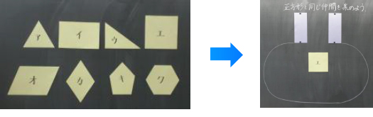 多角形の中から,正方形と同じ仲間を集める活動を取り入れる。