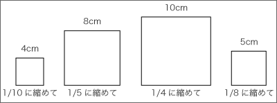 | 3 | かいた図形を出し合い,縮め方を知る。![]() |