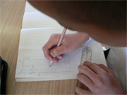 | 2 | 縮め方を考えて自分なりにかく。 | 1辺の長さを適当に決めてかくのではなく,「縮める」という意識で辺の長さを決めてかかせるようにする。速くできた子には,「縮め方」をいろいろと考えさせる。 |